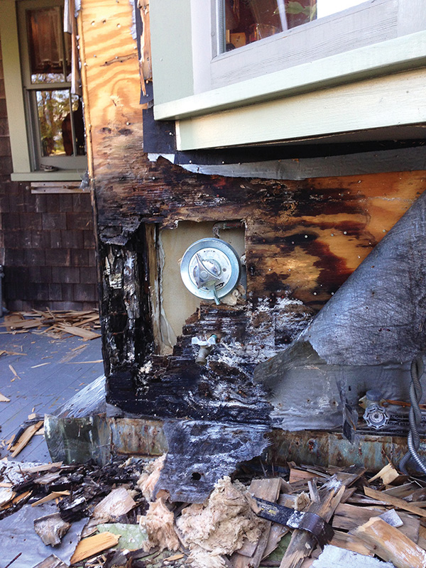Ripping off shingles (and then more shingles) exposed the extent of damage. The corner sill and post, sheathing, and even some of the fir porch decking had rotted.Several things had gone wrong. Water lines were in an exposed corner of an unheated crawl space.