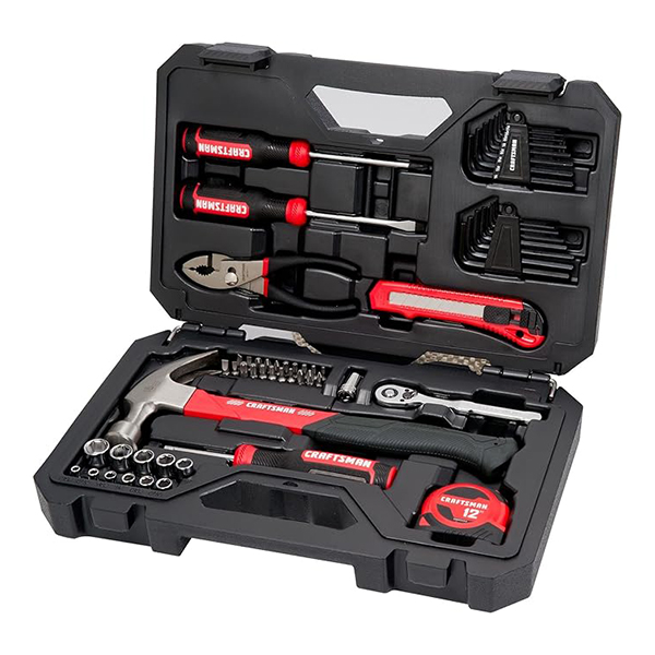 | While you may not be able to build a house with the tools in this kit, they’re great to have around for general home repair purposes. The 57-piece kit includes a pair of slip joint pliers, a fiberglass hammer, bi-material screwdrivers, and more. Each tool is ergonomic, corrosion resistant, and can be easily stored in the included case. We also love that this kit comes with a lifetime warranty. |